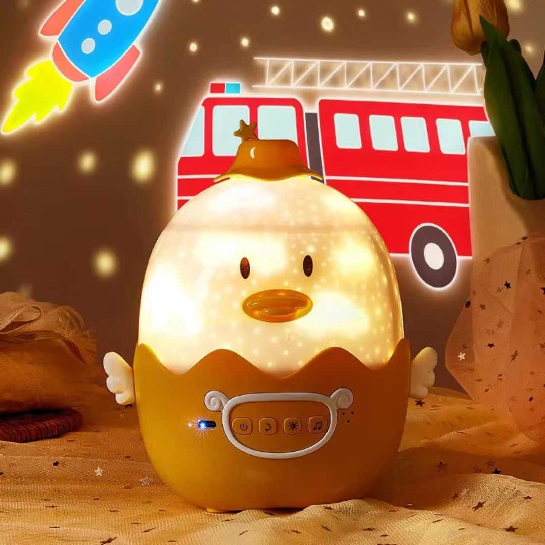 در نگاه اول، طراحی فانتزی و کودکپسند این شبخواب توجه را جلب میکند. بدنهی محصول از جنس پلاستیک باکیفیت و مقاوم ساخته شده تا در برابر ضربه یا افتادنهای احتمالی توسط کودک آسیب نبیند. سطح نرم و لبههای گرد دستگاه باعث میشود استفاده از آن کاملاً ایمن باشد. ترکیب رنگهای شاد در بدنه و نورهای قابل تغییر، باعث میشود این شبخواب با هر دکوراسیون اتاق کودک هماهنگی داشته باشد.