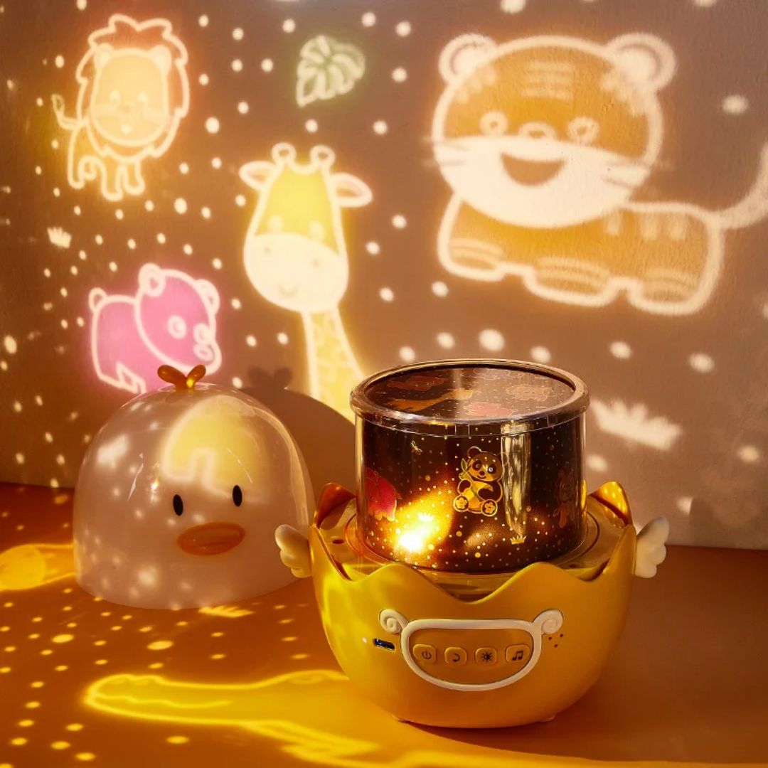 دستگاه دارای **موتور چرخان داخلی** با قابلیت گردش 360 درجه است که تصاویر را به شکل متحرک و نرم در سراسر سقف و دیوار اتاق پخش میکند. این ویژگی علاوه بر ایجاد جلوهای زیبا و جذاب، به تمرکز و آرامش ذهنی کودک هنگام خواب نیز کمک میکند. کلید کنترل چرخش نیز بهصورت جداگانه طراحی شده تا در صورت تمایل بتوان دستگاه را در حالت ثابت قرار داد.